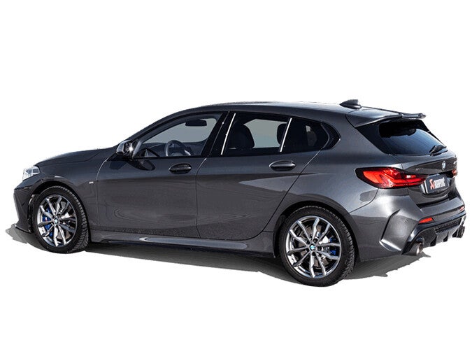 Magnifiquement conçu à partir de titane de haute qualité, ce système d’échappement léger est fini avec des sorties d’échappement en fibre de carbone accrocheuses et est un délice sensoriel complet. La soupape d’échappement - avec son boîtier coulé dans la fonderie maison - confère à l’échappement une sonorité riche avec une accentuation des hautes fréquences, notamment lors des passages de vitesses, le tout allié à une sonorité grave qui sublime le moteur de la voiture sans gêne ni gêne. drone pour les occupants. Une division en Y spécialement conçue réduit le bruit d’écoulement sans aucun compromis sur la distribution des impulsions de pression, offrant ainsi un son puissant et un chemin d’écoulement optimal. L’utilisation de matériaux légers et une configuration différente réduisent le poids total de l’échappement de 9.4 kg, soit une économie de 55.6 % par rapport à la version d’origine. La conception et la construction du chappement ont permis d’optimiser le niveau de puissance et le couple sur toute la plage de régime, avec des performances accruees de 3.3 kW (4.5 ch) à 5 350 tr/min et un couple en hausse de 5.9 Nm à 5 300 tr/min. Cela a été réalisé lors de tests internes avec des essais consécutifs sur le dyno Akrapovič contre une BMW M135i utilisant un échappement d’origine standard. Pour une mise à niveau supplémentaire du système d’échappement Slip-On Line (Titane), un ensemble de tuyaux Evolution Link (SS) en option est disponible. Le certificat de réception par type ECE n’est valable que pour les voitures de l’année modèle 2020 équipées d’un filtre à particules Otto/essence. Le système d’échappement peut être monté sur le modèle BMW M135i XDrive. Pour installer le système d’échappement Slip-On Line (Titane), le système d’échappement d’origine doit être coupé ; veuillez lire attentivement les instructions avant de commencer l’installation.