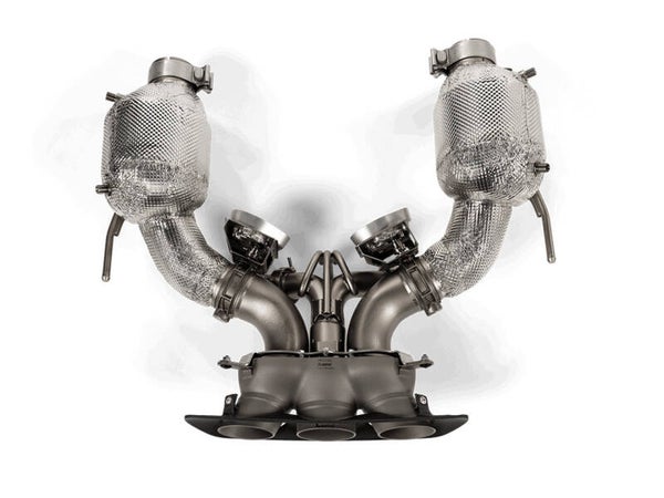 Des matériaux éprouvés en course sont utilisés pour créer ce système d'échappement en titane orienté vers la piste. Deux convertisseurs catalytiques sport de 200 cpsi remplacent deux filtres à particules à essence pour un flux de gaz plus direct et deux soupapes - dont le boîtier a été coulé dans la fonderie interne - ont été conçues pour produire un grondement profond et résonnant au démarrage et un son de course à mesure que le régime du moteur V6 de 120° augmente.Les sorties d'échappement sont imprimées en 3D pour une optimisation géométrique au service de la performance et de l'effet visuel, avec le manchon extérieur fini en fibre de carbone plaqué à la main, conçu pour être monté sur le pare-chocs, avec une apparence étonnamment différente de la version de série. Les tests menés par les ingénieurs d'Akrapovič en comparaison avec des véhicules équipés d'un échappement standard de série et d'un échappement Akrapovič Slip-On Race Line (Titanium) ont révélé une contre-pression plus faible de l'échappement Akrapovič Slip-On Race Line (Titanium), offrant un potentiel d'amélioration des performances avec le remappage obligatoire de l'ECU.Cet échappement léger a été développé pour une utilisation sur des circuits de compétition fermés uniquement, et il est isolé pour éviter le transfert de chaleur vers le compartiment moteur.CE PRODUIT NE SATISFAIT PAS AUX EXIGENCES DE CONFORMITÉ EN MATIÈRE D'ÉMISSIONS POUR UNE UTILISATION SUR ROUTE.